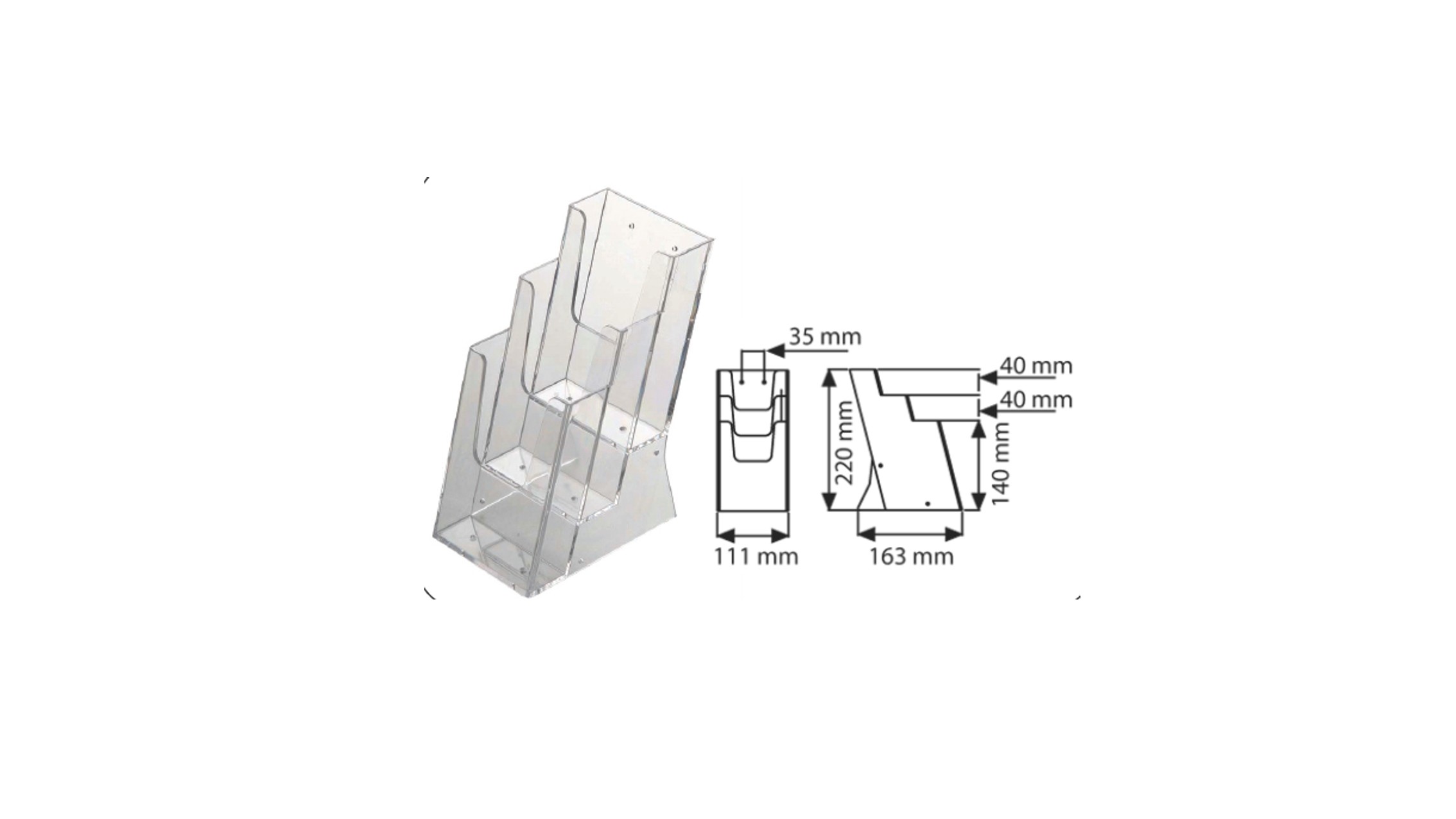 Portabrochure da banco in Perspex, 3 formati 1/3 A4 cm. 10×21.