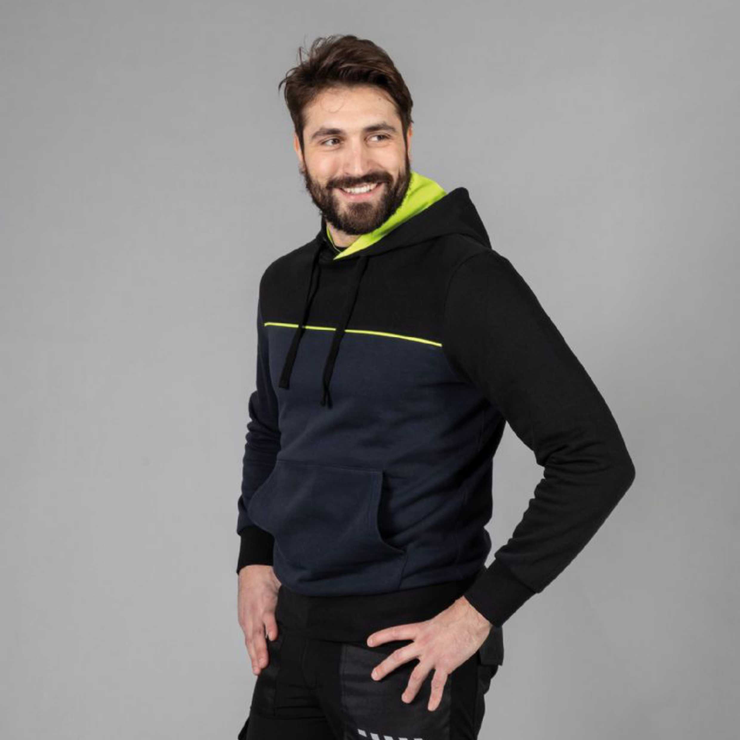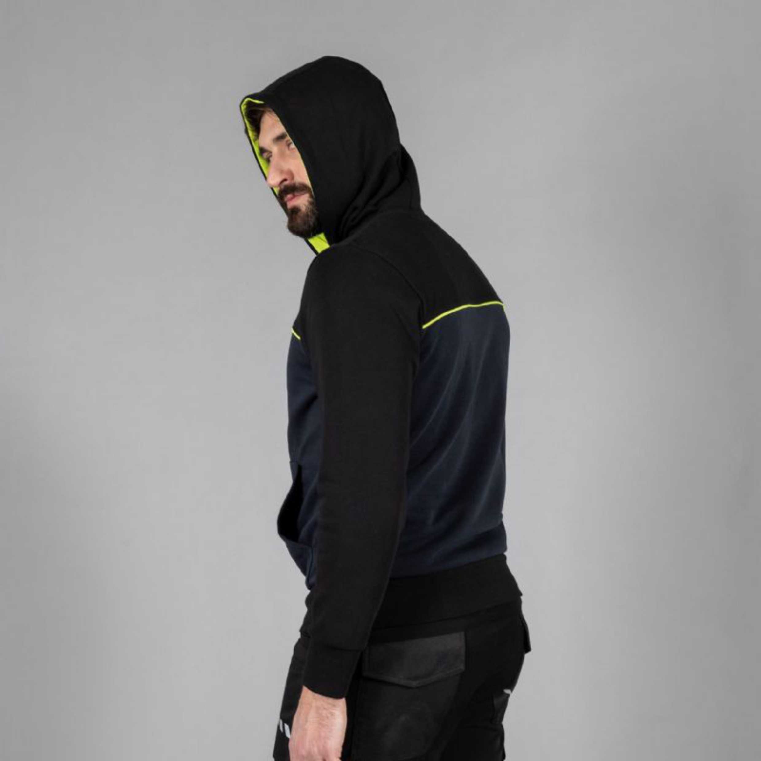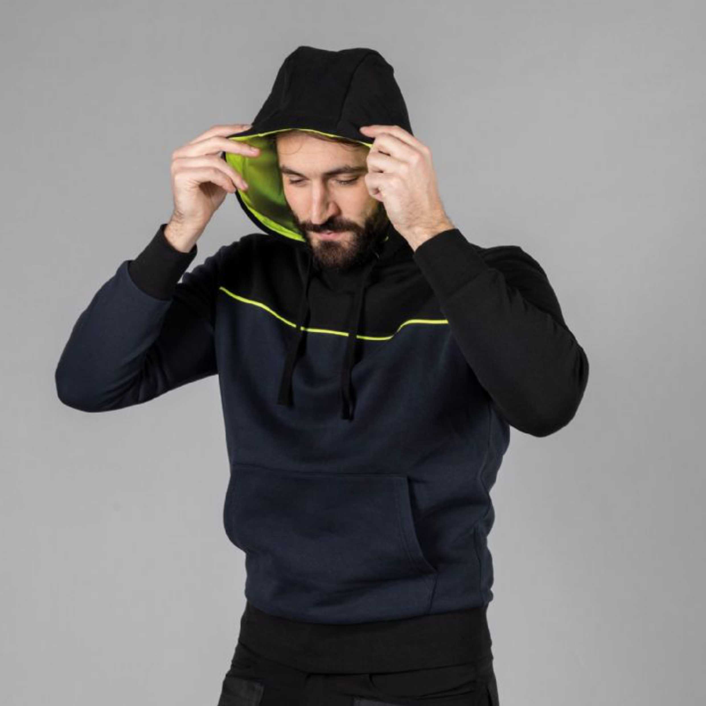 – Cappuccio foderato in jersey giallo fluo