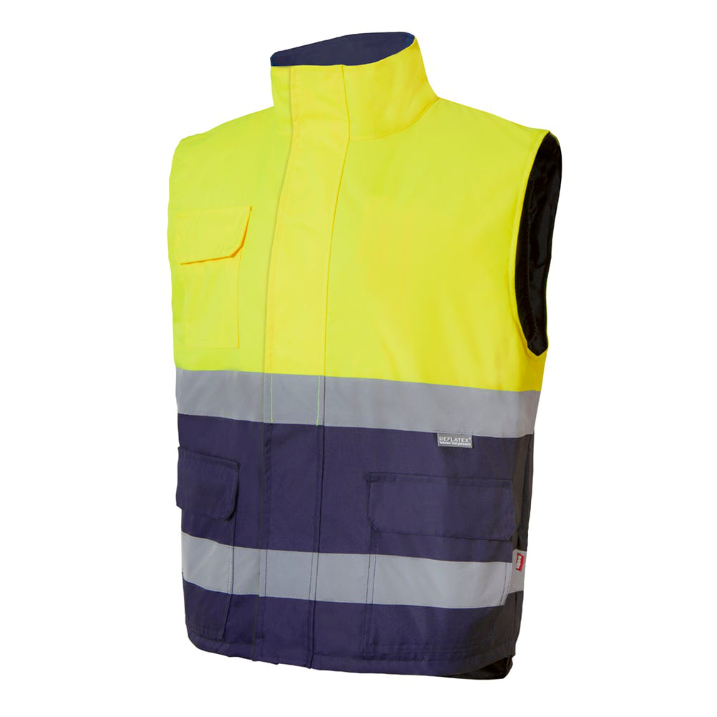 GILET ALTA VISIBILITA’ BICOLORE: ESTERNO: 100% POLIESTERE CON COPERTURA IN POLIURETANO. FODERA: 100% POLIESTERE