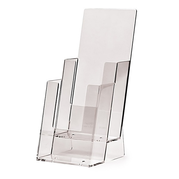 Portabrochure da banco a due scompartimenti verticali sovrapposti, contiene due formati 1/3 di A4 (10×21 cm).